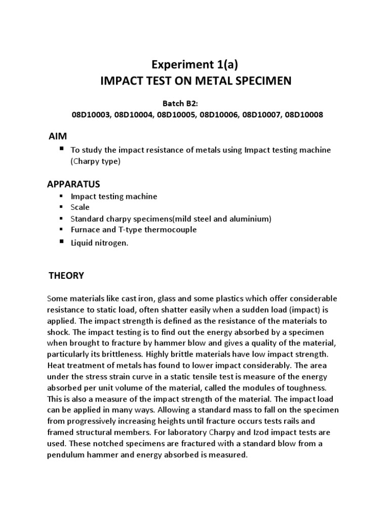 Pdfcoffee Com Impact Test Lab Report Pdf Free